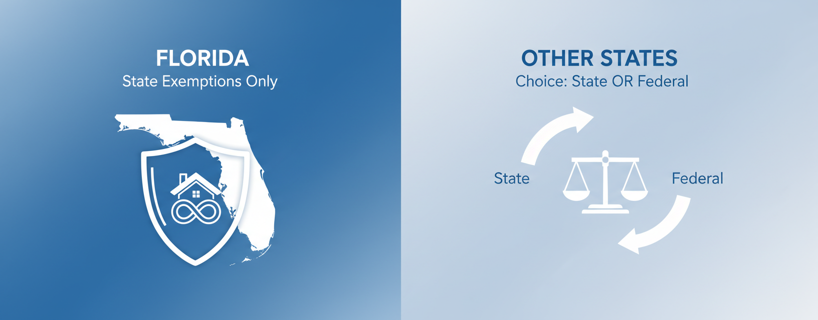 - Florida requires you to use state exemptions only and blocks federal options